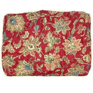 CHAPS Pillow Sham Red Jacobean Floral Burlap Trim Standard Size Cotton Annabelle