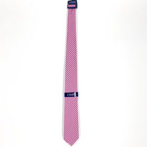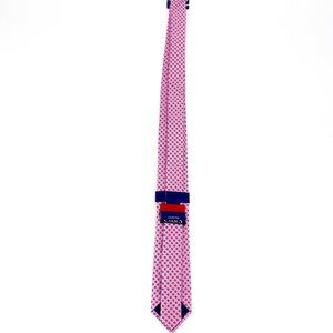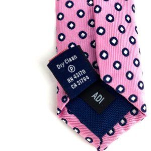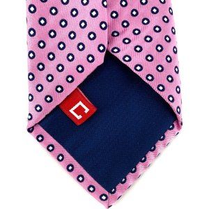 Chaps Pink Circle Dot Tie NWT is a classic polka dot design all over with a textured navy on the tipping for contrast to the full pink. The red bar tack is complimentary to the CHAPS logo tab and holder on the tie. Chaps Pink Circle Dot has a narrow width with standard length. This Pink Circle Dot is perfect for both office professional and modern casual styling with full suits, solids or prints and trousers.