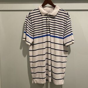 CHAPS Polo Mens Large White Striped Shirt Performance Golf Classic Preppy