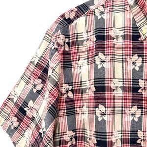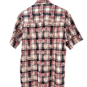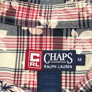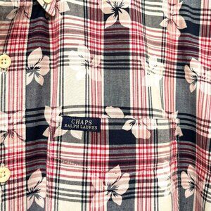 CHAPS RALPH LAUREN Shirt Button Down Short Sleeve Plaid with Floral Pattern Sz M
