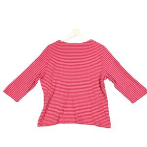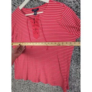 CHAPS RALPH LAUREN Stripe Tie Neck Top Womens Size 2X Coral Nautical Long Sleeve