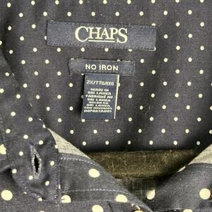 The CHAPS Ralph Lauren women's navy blue polka dot shirt in size 2x is a stylish and comfortable button-up top designed for plus-size women. The contrast cuff sleeves add a touch of sophistication to the classic polka dot pattern, making it a versatile piece that can be dressed up or down for various occasions. The navy blue color adds a chic and classic touch to the overall look, making this shirt a must-have addition to any woman's wardrobe.