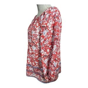 CHAPS RALPH LAUREN WOMANS TUNIC BLOUSE SIZE P L/G RED MULTICOLOR 3/4 SLEEVE