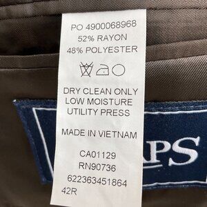This CHAPS Ralph Lauren blazer in size 42R is a classic blend of brown and beige, perfect for any career-focused man. Crafted from polyester, its flecked pattern exudes sophistication.