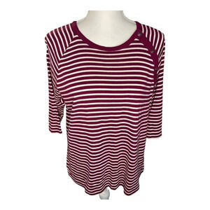CHAPS Ralph Lauren Women’s XL Burgundy Red Striped 3/4 Sleeve Top