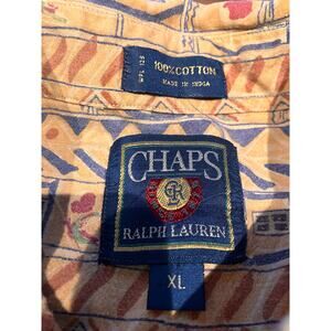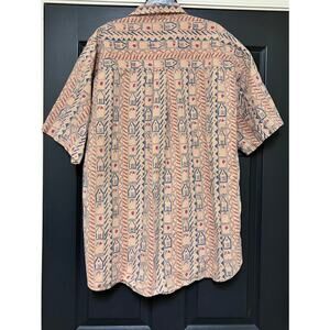 CHAPS Ralph Lauren XL Beige Blue Tribal Pattern Short Sleeve Button Up Collar