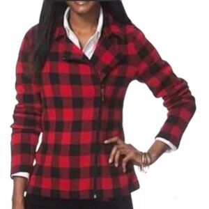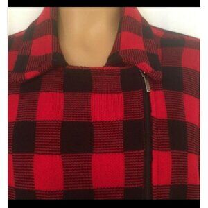 CHAPS Red Buffalo Plaid Side Zip Moto Jacket Sweater size S