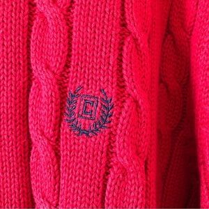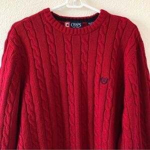 - CHAPS Red Classic Cable Knit Embroidered Logo Pull Over Sweater Men Size…