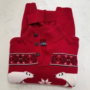 CHAPS Red Crewneck Sweater with Festive Nordic Pattern