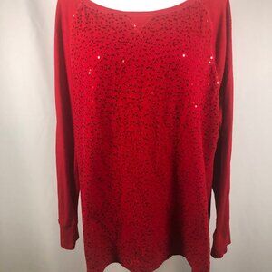 ✨ CHAPS Red Sequin Cotton Knit Top — 3X — Holiday Luxe & Comfort ✨