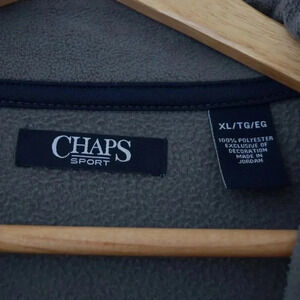 Features a quarter zip closure over the chest, embroidered Chaps logo over the left breast and a pullover design.