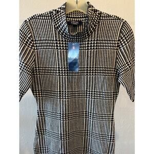 CHAPS Sheath Dress Womens Size Small Plaid White Black Preppy Academia Workwear