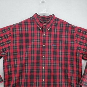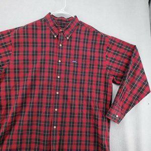CHAPS Shirt Men's Long Sleeve Casual Button Down Plaid Oxford Red 2XL