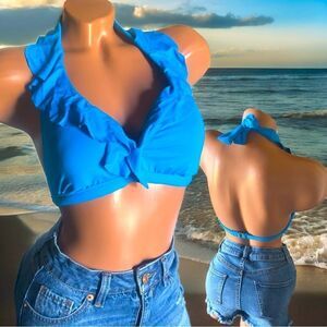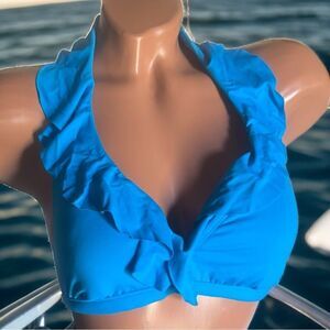 CHAPS Swimwear l Ruffle Bikini Top l Tie-Back l Gold Hardware l 6D l EUC