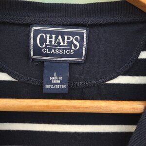 CHAPS T-SHIRT WITH POCKET DETAIL NAVY AND WHITE STRIPED SIZE LARGE 100% COTTON