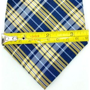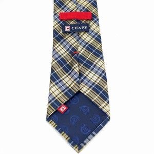 CHAPS Tie Navy & Light Blue Yellow Plaid Striped 100% Silk Hand Made Necktie 58"