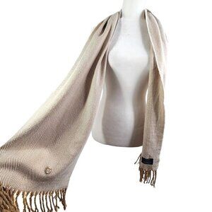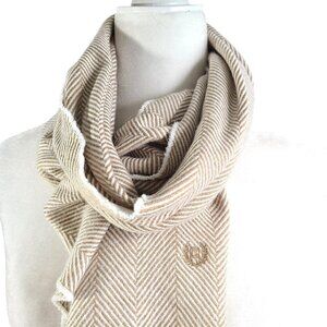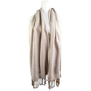 CHAPS White Caramel Brown Chevron Super Soft Fringe Scarf