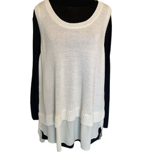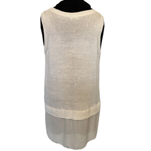 CHAPS White Knit crew neck sweater vest chiffon layer hem XL