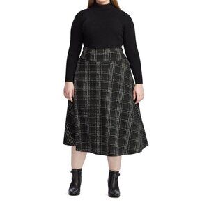 CHAPS Woman Ralph Lauren A Line Midi Skirt 4X Black Plaid Stretch Pull On NWT