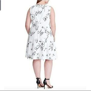 Chaps 14W Plus Size White Floral Fit & Flare Dress