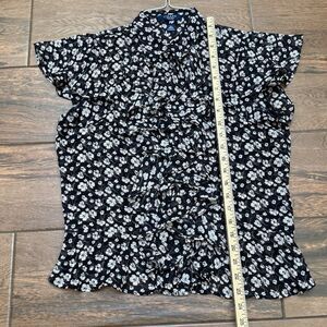 CHAPS Women’s Ruffle Blue Pink White Flower Blouse Top Flowy PETITE LARGE PL