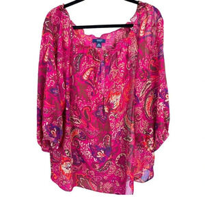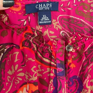 Hey there! I wanted to tell you about this beautiful CHAPS Women's Sheer Vibrant Colored Valentine's Day Blouse in Size XL. It's in great condition and has been handled with care. Originally, it was sold for $65. If you're interested, I'm totally open to hearing any offers you might have!