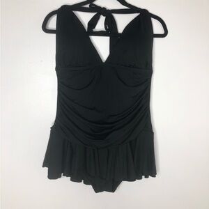 Heavy side Chaps Women’s Size 6 Skirted Swimsuit One-Piece Black Ruched Tummy Slimming ruching