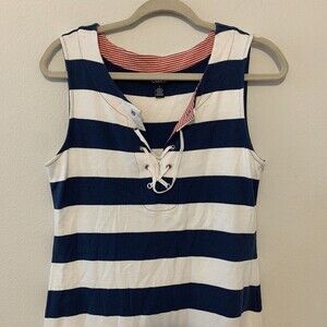 CHAPS Womens Size Medium Nautical Blue White Stripe Sleeveless Flutter Hem Dress