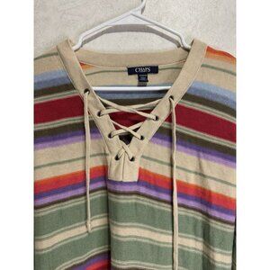 CHAPS Womens V-Neck Sweater Multi-Color Striped Long Sleeve Lace Up Rainbow 1X