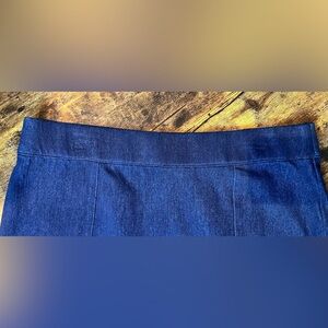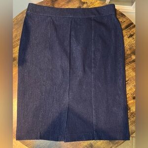 Women’s CHAPS stretch, pencil dark wash denim skirt. Gorgeous dark denim wash. 2” wide elastic waist band. Stretchy fabric. Knee length. Slit in back. Like new condition
