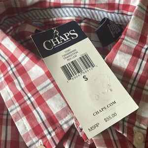 CHAPS red/white/black plaid button down shirt. NWT. Small.