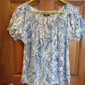Pit to Pit = 20". Bottom width 22". Top of collar to bottom = 23". Soft, light fabric. Elastic around collar and sleeves. Nice for summer. Thank you for looking!