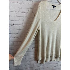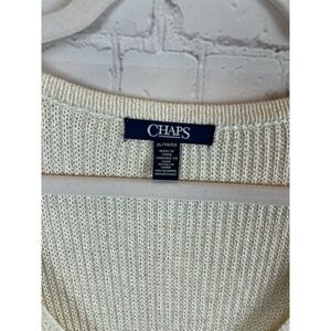 CHAPS white cream gold knit V-neck high-low sweater pullover top viscose size XL