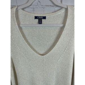 CHAPS white cream gold knit V-neck high-low sweater pullover top viscose size XL