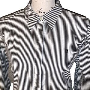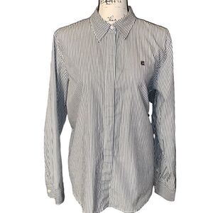 CHAPS white & navy striped button down blouse XL