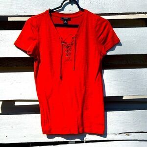 CHAPS Lace Up Top Worn one time See pics for fabric content & care Excellent condition