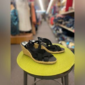 CHAPS Ladies 9 Black Elastic Wedge Sandals