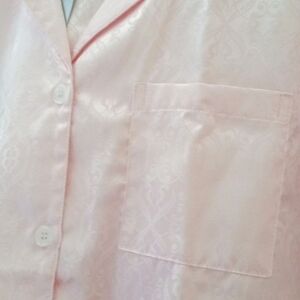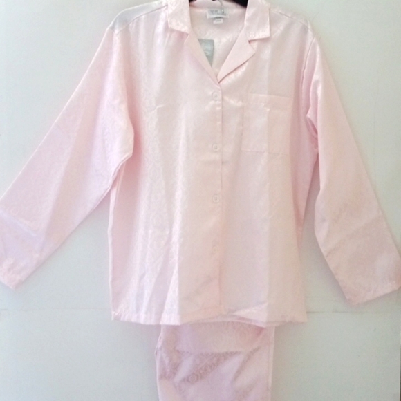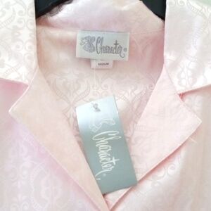 CHARACTER Pink Satin Single Pocket Long Sleeve Button Up Pajama Shirt and Elastic Waistband Long Pants SIZE Medium NWT