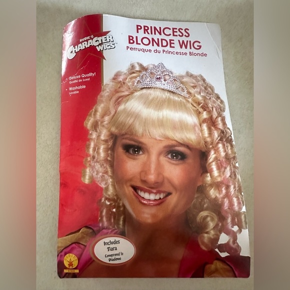 CHARACTER WIG by Rubies Costume Co, Blonde Curly Wig Pink Highlights No tiara.