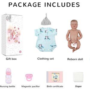This Beautiful Life-sized Reborn Dolls will be Yours - Charex sincerely and professionally makes dolls, we are committed to conveying love and companionship through dolls. Our beautiful gift package comes with 1 doll, 1 nursing bottle, 1 magnetic pacifier, 1 birth certificate, 1 onesie , 1 newborn hat and 1 gift box. We believe that with this doll your life will become more interesting and beautiful.
