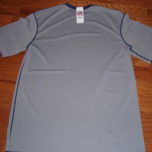 Jersey is Gray with Blue accents and has the San Diego Chargers Football name along with the Chargers Logo on the front of the jersey --