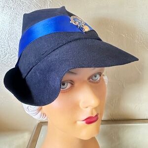 The New York Creation label was created by a group of well-known designers who wanted to remain anonymous & wanted to support the New York Creation label & keep it competitive with French styles of the era. The label is small, white and blue & most of the time it states the hat size…22 or 23, or ADJUSTABLE.