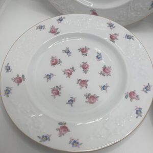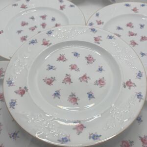 Pristine EXCELLENT set of seven gorgeous plates with embossing and lovely rosebud design. Charlene pattern. Hand numbered and signed! Zoom in! A super RARE pattern in super excellent condition. Blanc de Chine.