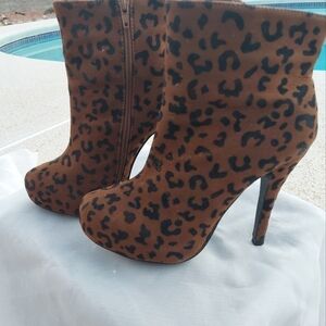 Charles Albert Leopard Brown Boots size 7.5 side zip 4 inch heel these are super sexy and in very good condition