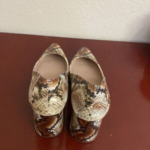 CHARLES BY CHARLES DAVID Beige Python Embossed Vasto Flare Slip On Heels 8.5M