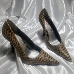 CHARLES BY CHARLES DAVID brown tan croc leather pointy toe high heel pumps SZ 7