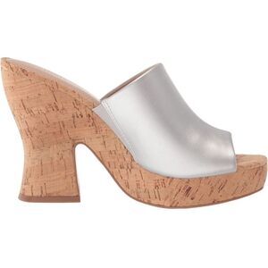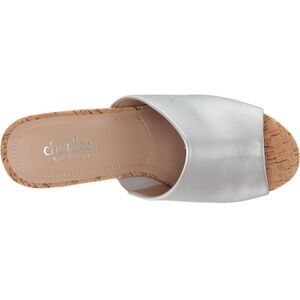 A cork-textured heel and platform enhance the earthy vibes of a lofty sandal fashioned with a comfort-cushioned footbed.