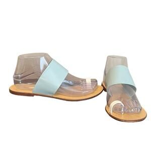 CHARLES DAVID Ama Robin Egg Blue & White Minimalist Made in Italy Flat Sandal Size 8