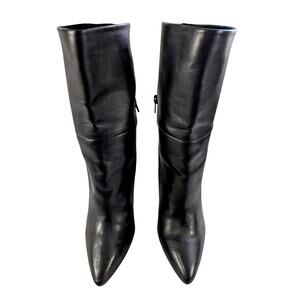 In rich black faux leather-- that looks so absolutely teal- these boots are from fabulous Charles David! With a pointy toe, stiletto heel, and hidden inside zipper! So sleek! 4.25" heel, 7.75" shaft height, 13" shaft circumference at top opening! Size 8M, worn twice- almost new! Excellent! Superb EUC Condition! **ABSOLUTELY GUARANTEED CONDITION: EUC MINTY-EXCELLENT TO LIKE-NEW, by Lily @HauteClub!*** *Measurements always available on request!*