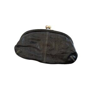 CHARLES DAVID Black Leather Gold Kisslock Clutch Bag